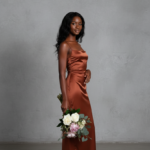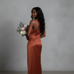 Square Neck Satin Slip Long Dress in Rust